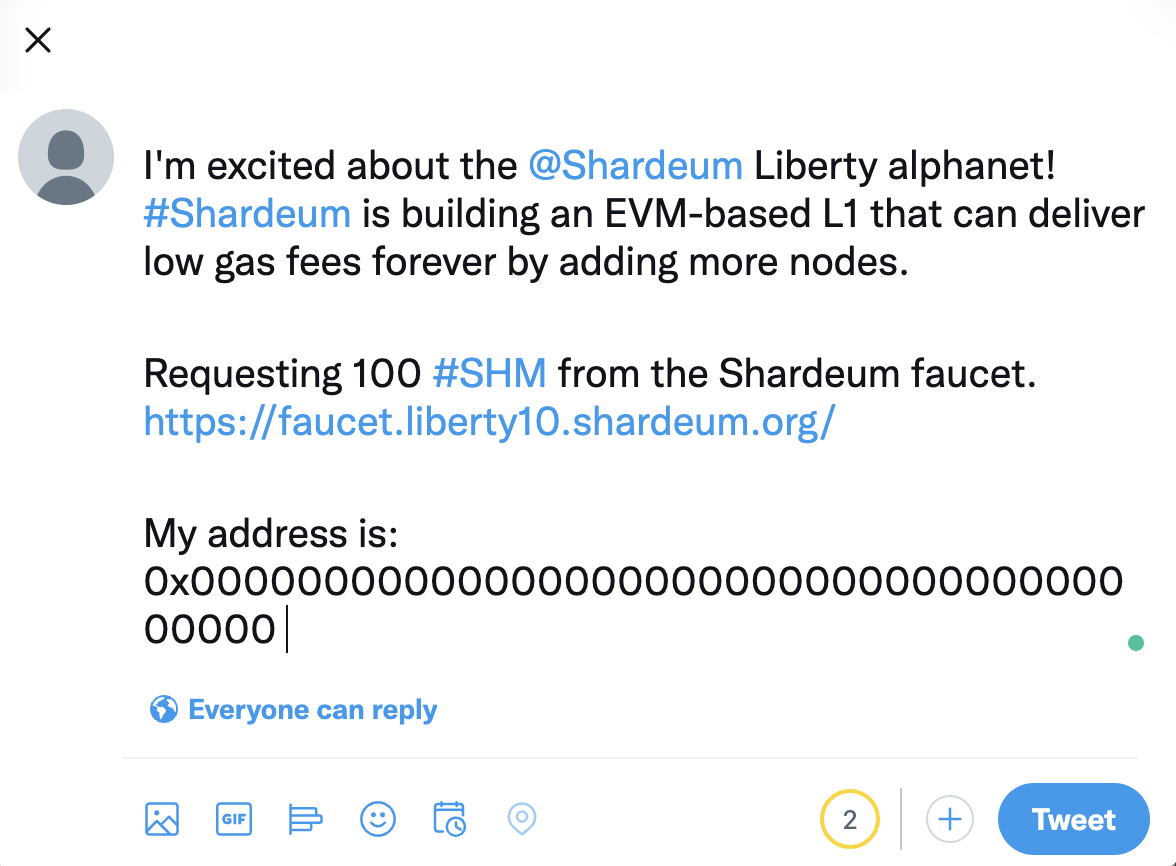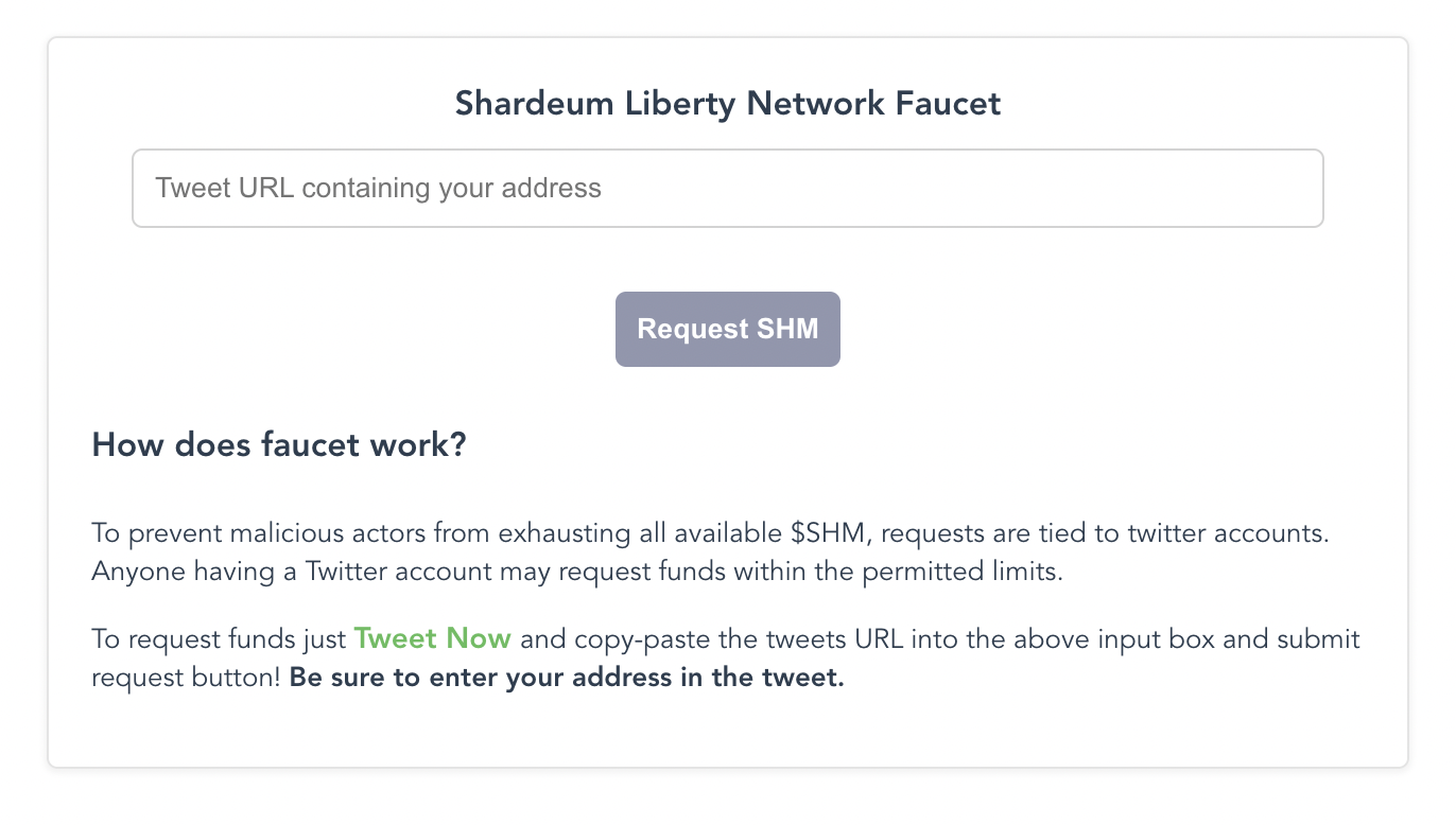 \*Tweet required to avoid malicious activities or abuse of the faucet and to spread Shardeum/its mission to bring decentralization to everyone